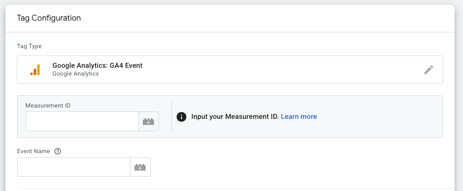 - Go to Tags > New > GA4 Configuration.