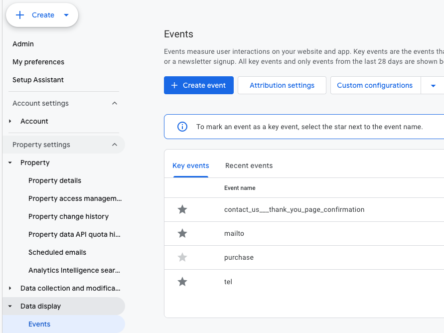 - In GA4: Admin > Events.