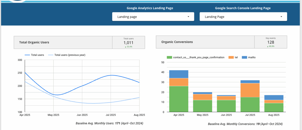 Link GA4 with Google Search Console to see which keywords bring traffic (ex: “landscape design [city],” “lawn care near me”).