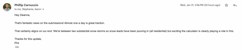 Since we launched the new Cost Calculator on Jan 6, it has generated 13 qualified leads (nearly one a day!).